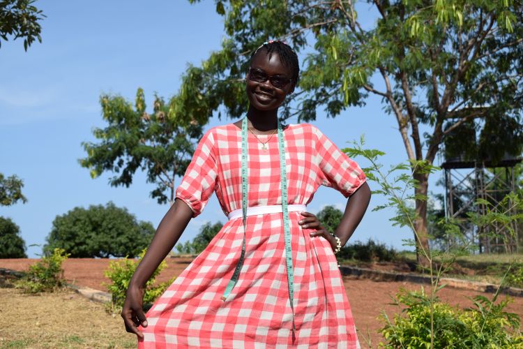 Raphaela is an inspiration to other students. Her smile is infectious. At just fifteen, getting ready for her final exams in Senior 4 (equivalent of our Junior Cert), she’s mastered the skills to tailor her own clothes – which she is keen to showcase for you in this photo.